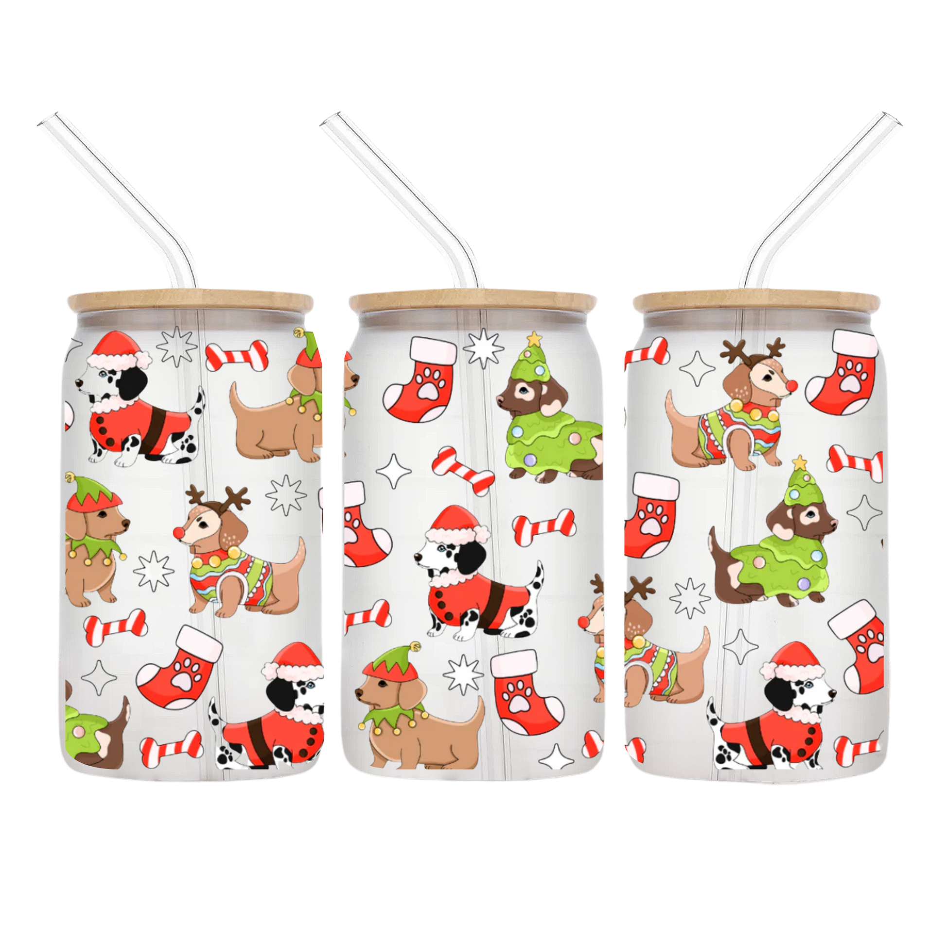 Sip in style with one of our Christmas Pups glass cups! Each cup comes with a Bamboo Lid & Glass Straw.