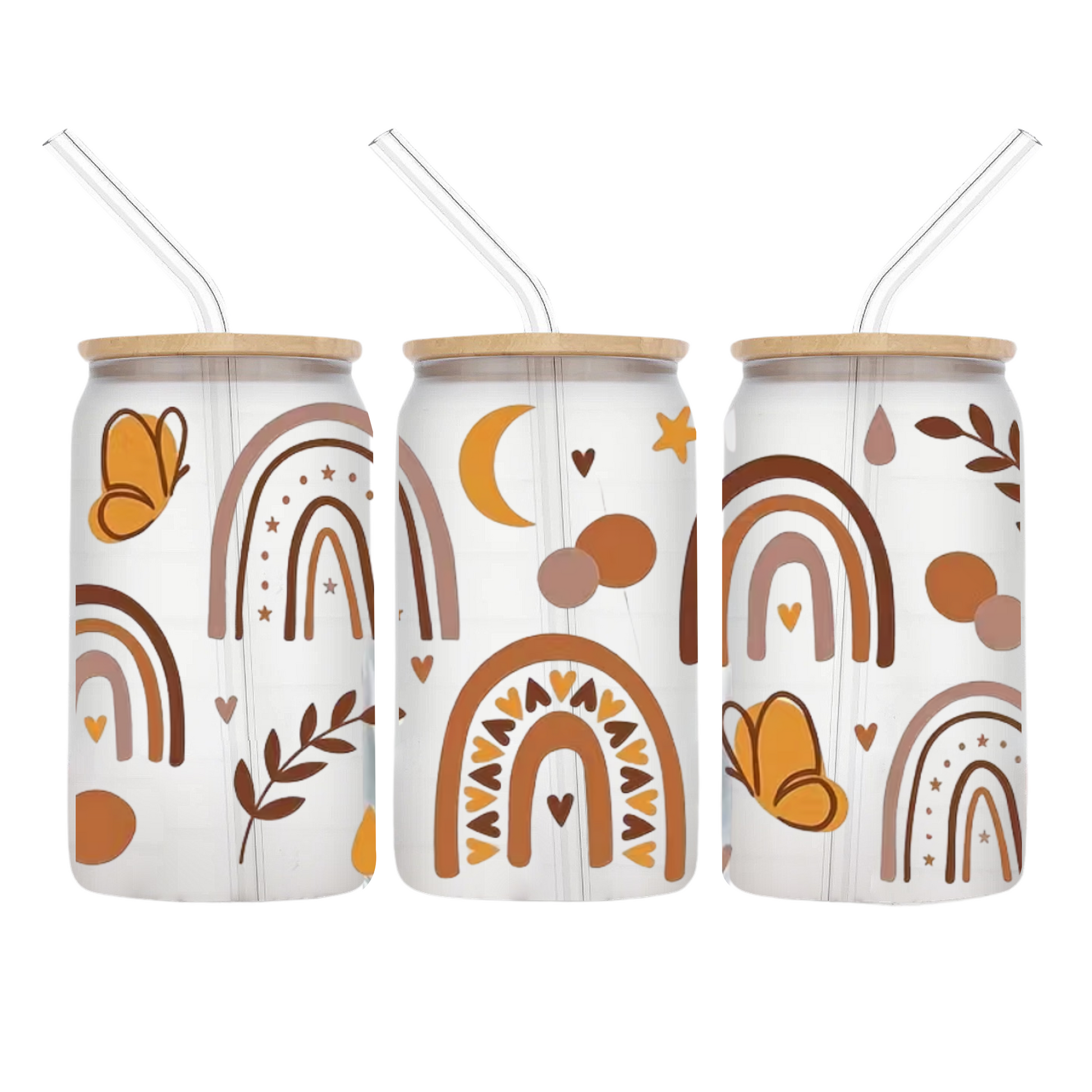 Sip in style with one of our Neutral Boho glass cups! Each cup comes with a Bamboo Lid & Glass Straw.