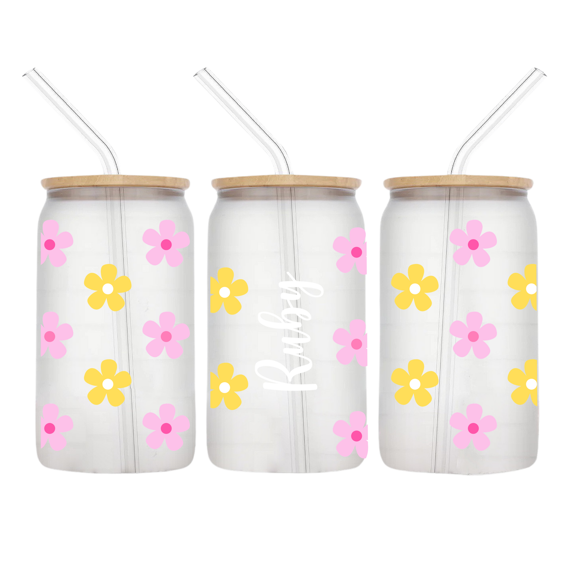 Each glass comes with a Bamboo Lid and Glass Straw. Upgrade to a coloured lid or charm glass straw for just $5 extra.